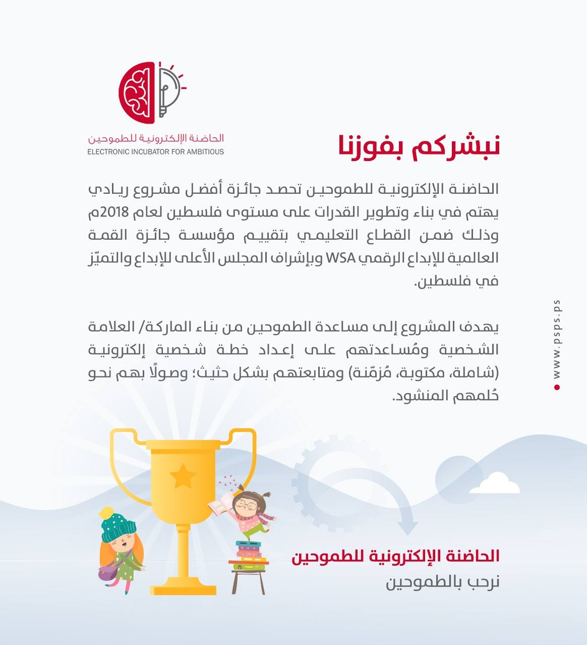 The electronic incubator for ambitious is the first innovative interactive platform of its kind in Palestine and focuses on building and developing the capacities of young people, as it connects these ambitious youth with mentors related to the ambition of every young person and within his own age group so that different aspects such as social values and culture, life skills, education are addressed. And other related aspects in order to guide young people towards the appropriate professional or academic path and within an environment that stimulates character building.